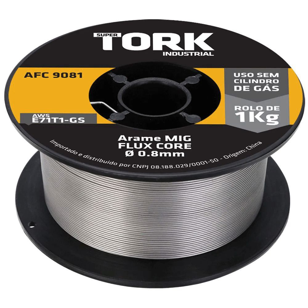 Arame Solda MIG 0,8 mm 1 kg Sem Gás Fluxcore AFC-9081 Tork - O arame mig flux core AFC-9081 SUPER TORK INDUSTRIAL é uma arame sólido para solda sem cilindro de gás. - Arame MIG 0,8mm – Rolo de 1 kg - Uso sem cilindro de gás - Solda em todas as posições - Solda aço carbono em geral - Excelentes características de terminação Características técnicas Classificação AWS E71T1-GS Tipo Flux Core – Autoprotegido Aplicação Aço carbono Metal depositado C ≤ 0.14 / Mn ≤ 1.75 / Si ≤ 0.60 Espessura 0,8 mm Aplicação: - Estruturas metálicas, recipientes com pressão, tubulações e reparação automotiva. - Arame sólido para solda sem cilindro de gás. - Excelente soldabilidade, baixos níveis de respingo e ótimo acabamento.