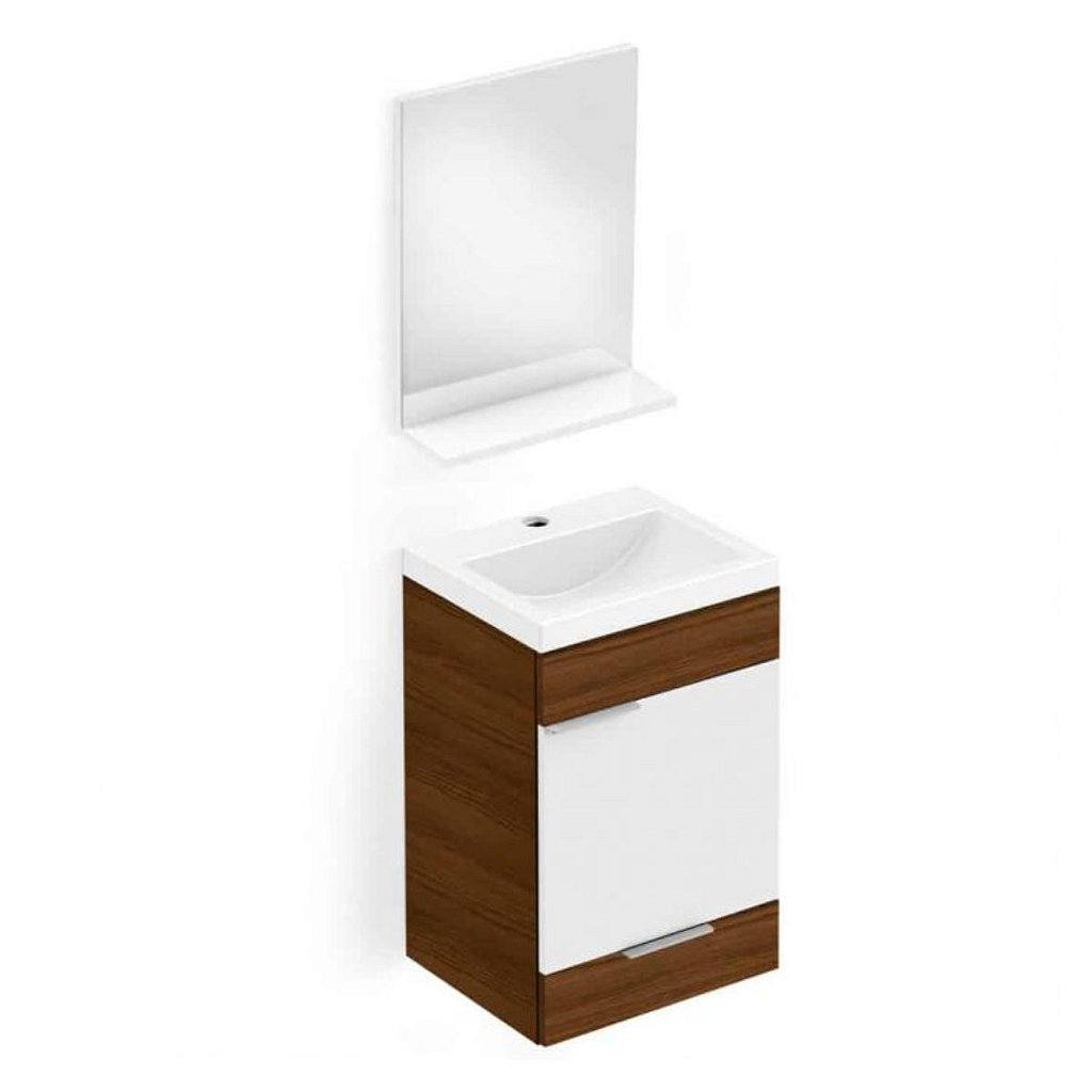 O Kit Avant de gabinete com 1 Porta e 1 Gaveta possui lavatório integrado, espelho e prateleira é a solução completa da marca Incepa para quem busca praticidade.