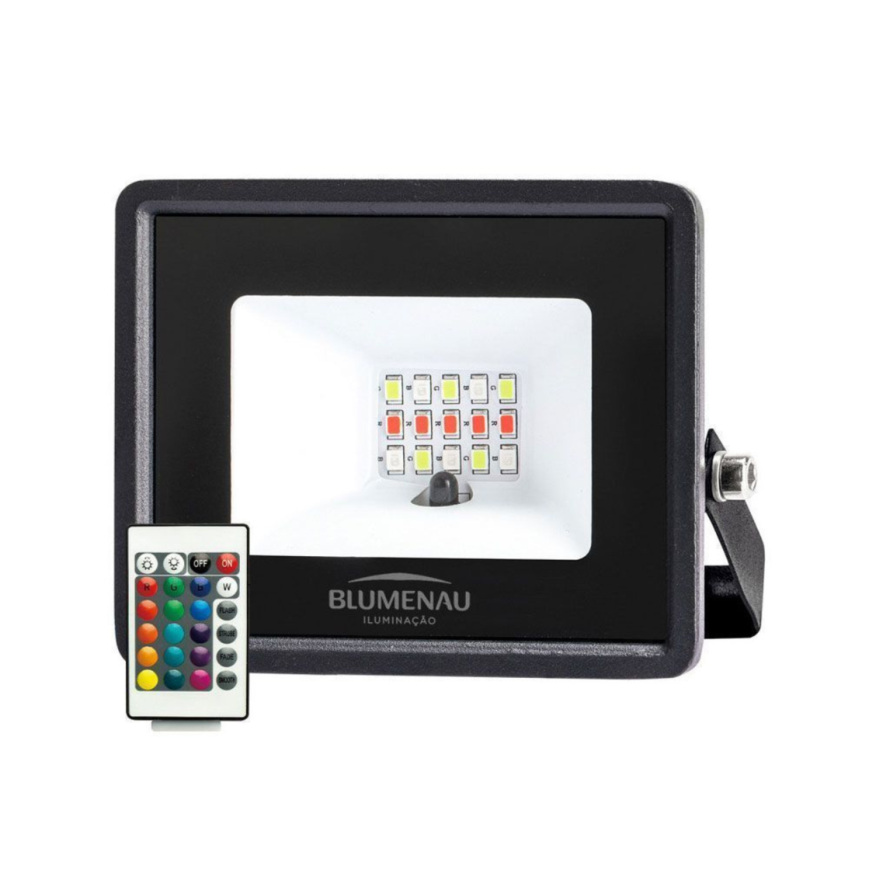 O Refletor LED tech 50W rgb da Blumenau Iluminação é perfeito para iluminação de fachadas, jardins, árvores e eventos. Além de possuir IP65 (índice de proteção), ele é resistente contra intempéries do tempo, como poeiras e pequenos objetos. é uma opção para quem deseja solução para uma iluminação eficiente e de baixo consumo. Com corpo em alumínio, lente em vidro transparente e seu ângulo de abertura de 110º chega até 12 metros de distância. Atende as variações de tensão entre 110V e 220V e possui uma vida útil de 30.000 horas.