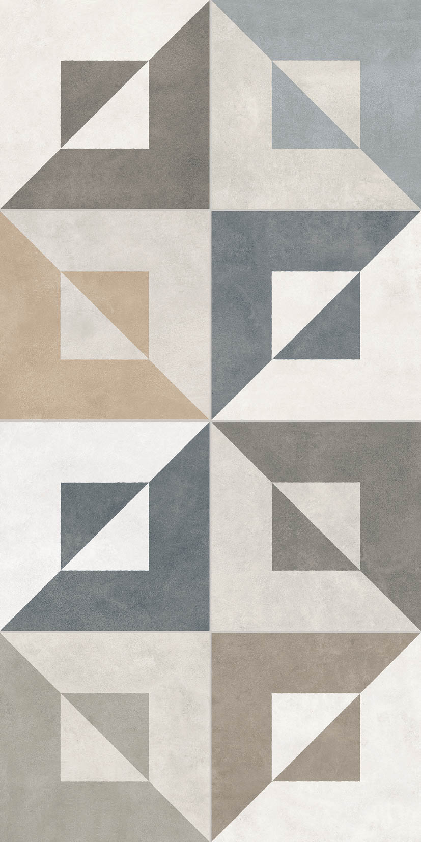 Os movimentos e linhas melódicas do Blues serviram de inspiração para o nome desta coleção. Na música, os primeiros versos tradicionais de blues consistiam em uma única linha repetida quatro vezes. Assim, cada peça da coleção Blues traz linhas com quatro desenhos. As formas geométricas e cores urbanas evidenciam dinamismo com a presença da cor cinza e a predominância de tons azuis. São peças ideais para serem rotacionadas e formarem paginações com efeitos ópticos.